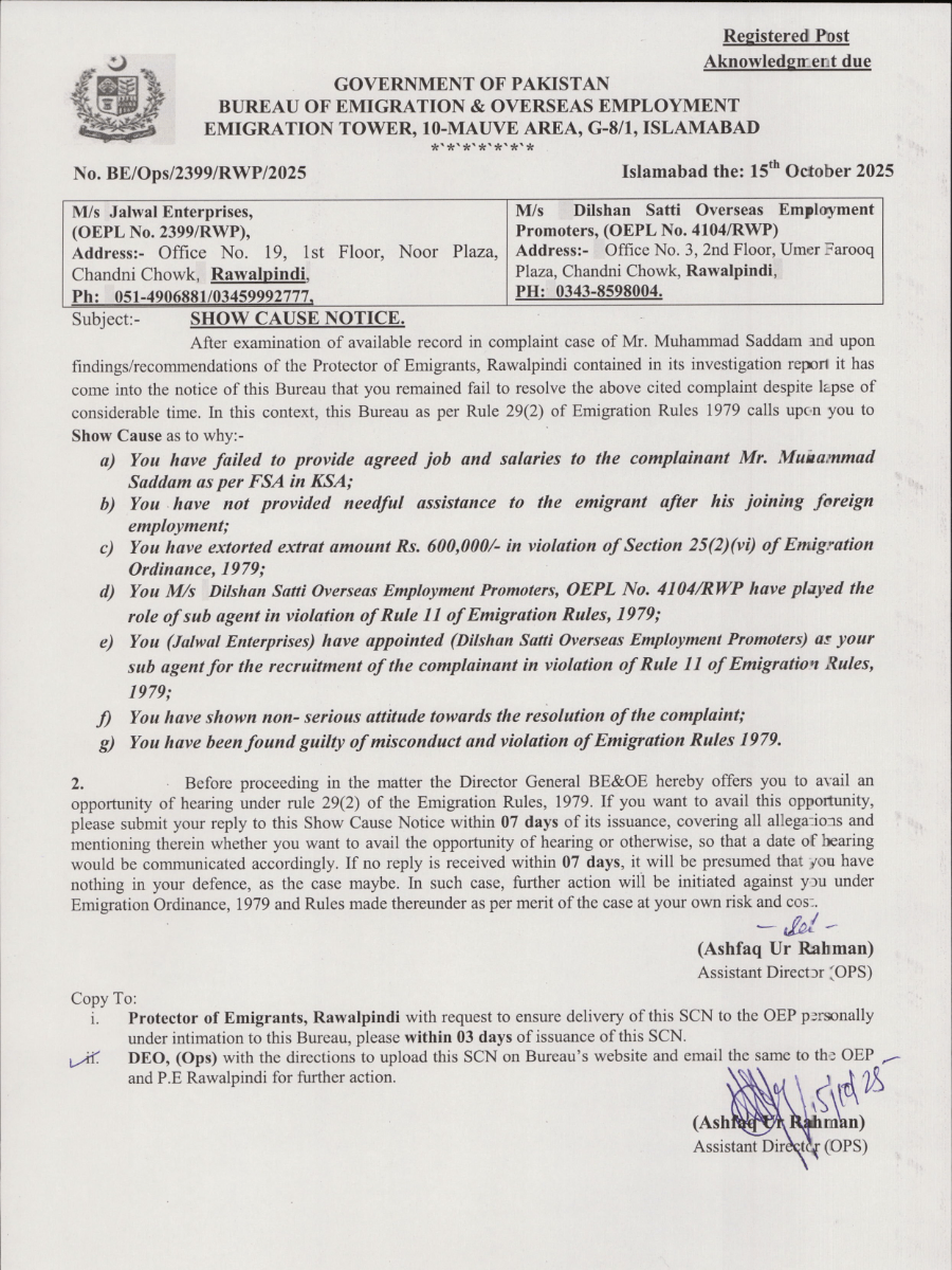 OEP Name: M/s.Dilshan Satti Overseas Employment Promoters,