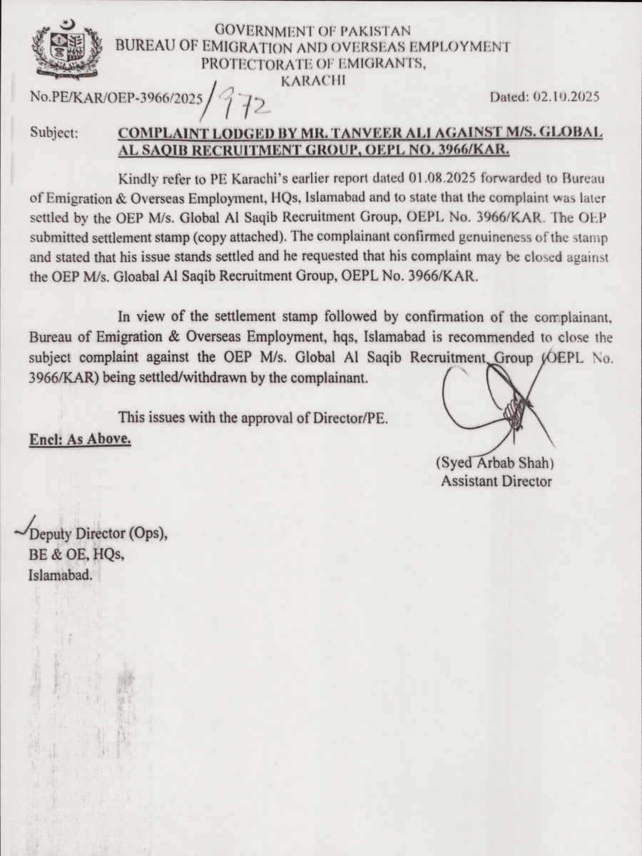 OEP Name: M/s.Global Al Saqib Recruitment Group
