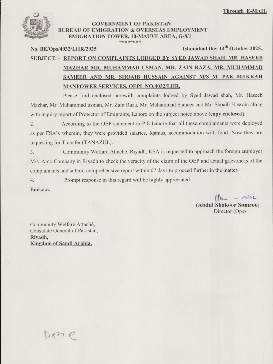 OEP Name: M/s.M. Pak Makkah Manpower Services,